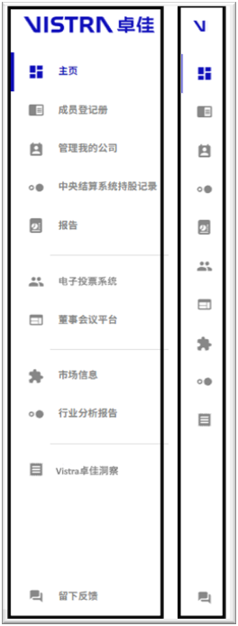 要擴展或縮短Vistra卓佳發行人在線平台的功能面板請點擊菜單欄右下角的箭頭按鈕。